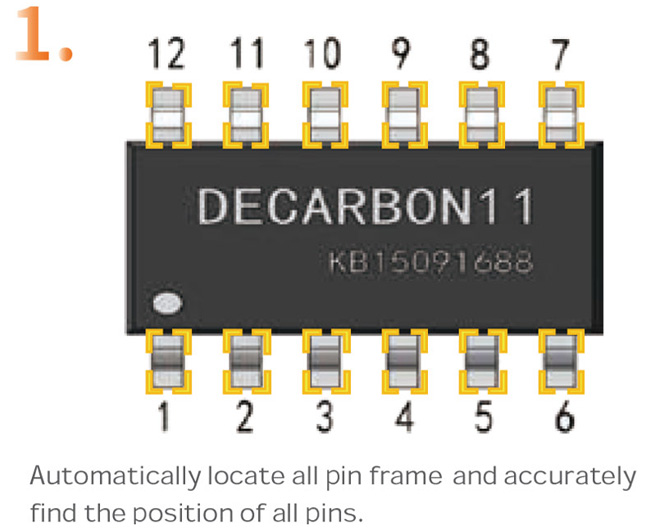 AOI uses telecentric lens without distortion effect, adopts multi-reference point calibration method, and automatic positioning of detection window, including double positioning of pad and body, which solves the problem of offsetcaused by board deformation and greatly reduces false alarms.